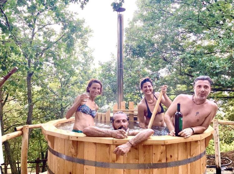 A unique experience to live all year round: you can use it under the winter snow thanks to a wood stove that heats the water inside.